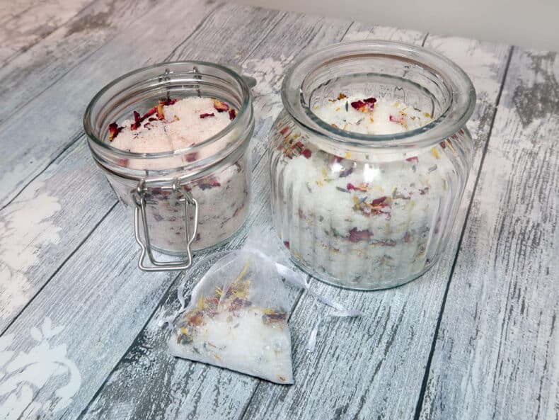 If you’re looking for a quick and easy bath time treat to pamper and scent the skin, then look no further than these floral bath salts.