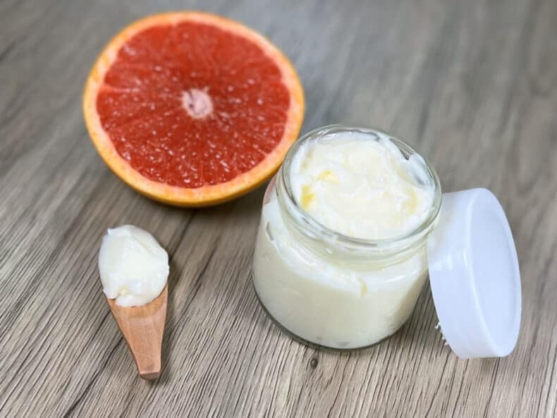 Tip Although we love the everyday white of a conditioner, adding a touch of pink mica to the finished product can help it stand out and emphasize the pink grapefruit.