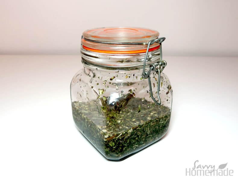 I’ve seen some places telling you to fill the jar halfway with your herbs and then fill the rest with alcohol, but honestly, I think that’s a waste. I’ve had lots of success with just covering the herb, so that’s what I do every time.