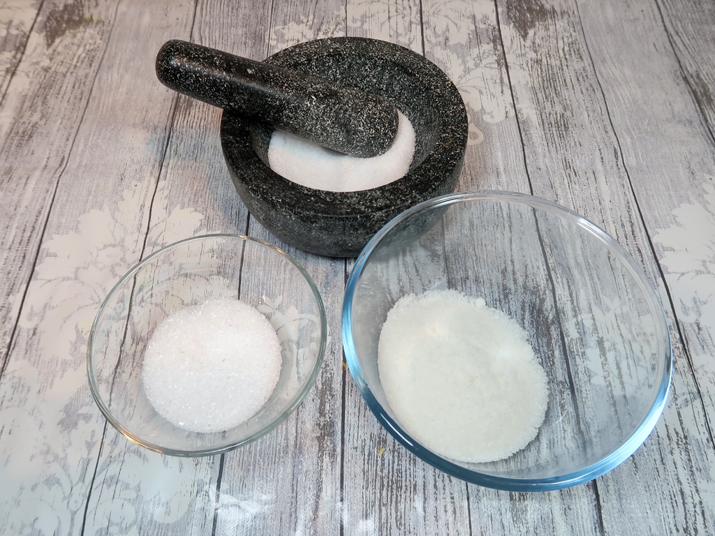 I’m using Lavender, rose and calendula petals for the floral bath salts. Not only are they vibrant and pretty, they all have superb skin benefits and are often my go-to when making oils, balms, and creams.